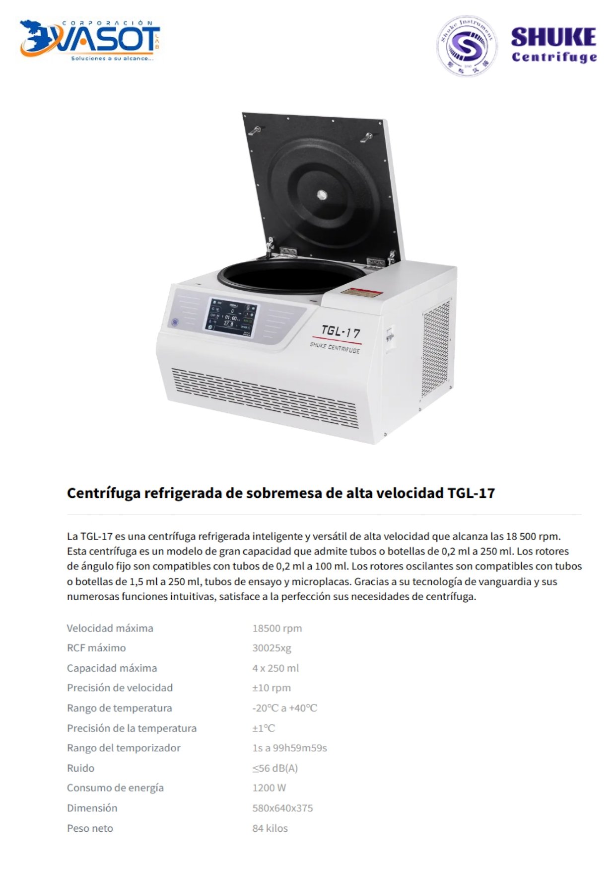 CENTRIFUGA REFRIGERADA SHUKE TG-17