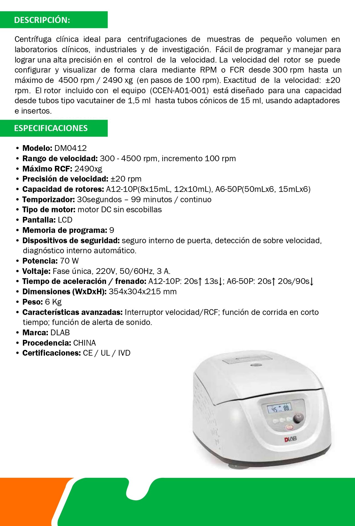 Centrífuga 12 Tubos X 10ML Clínica Digital Rpm 300-4500 Rotor A12-10P– Modelo: DM0412 – DLAB
