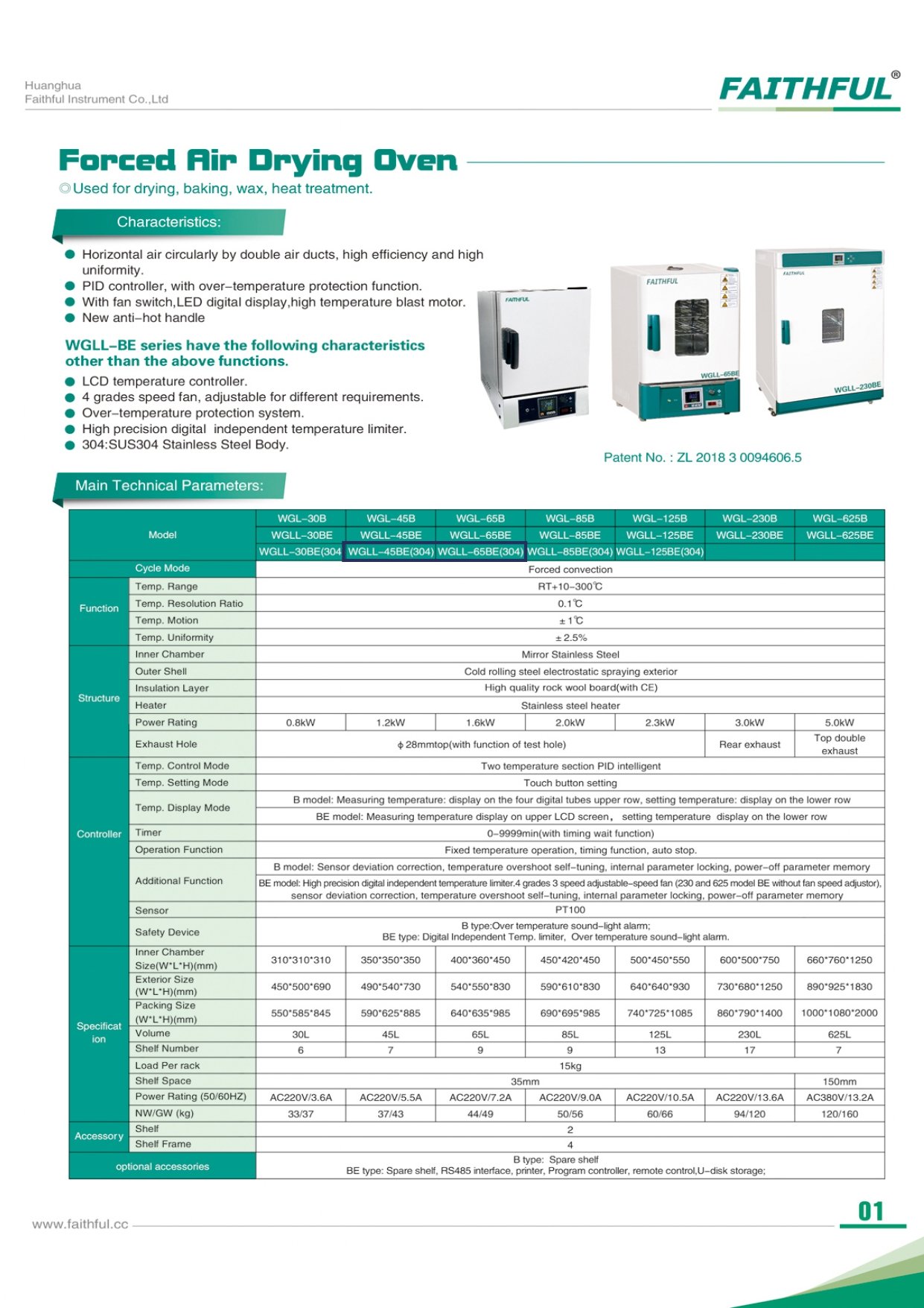 HORNO DE SECADO FAITHFUL WGLL-45BE(SUS304) – 45L / WGLL-65BE(SUS304) – 65L